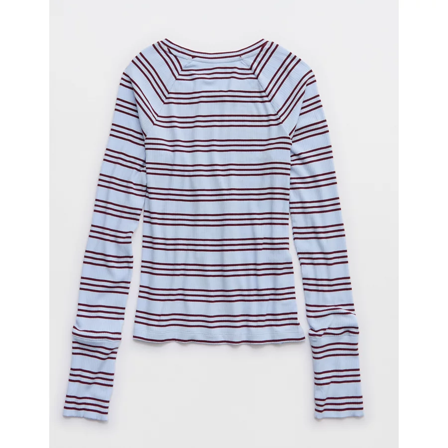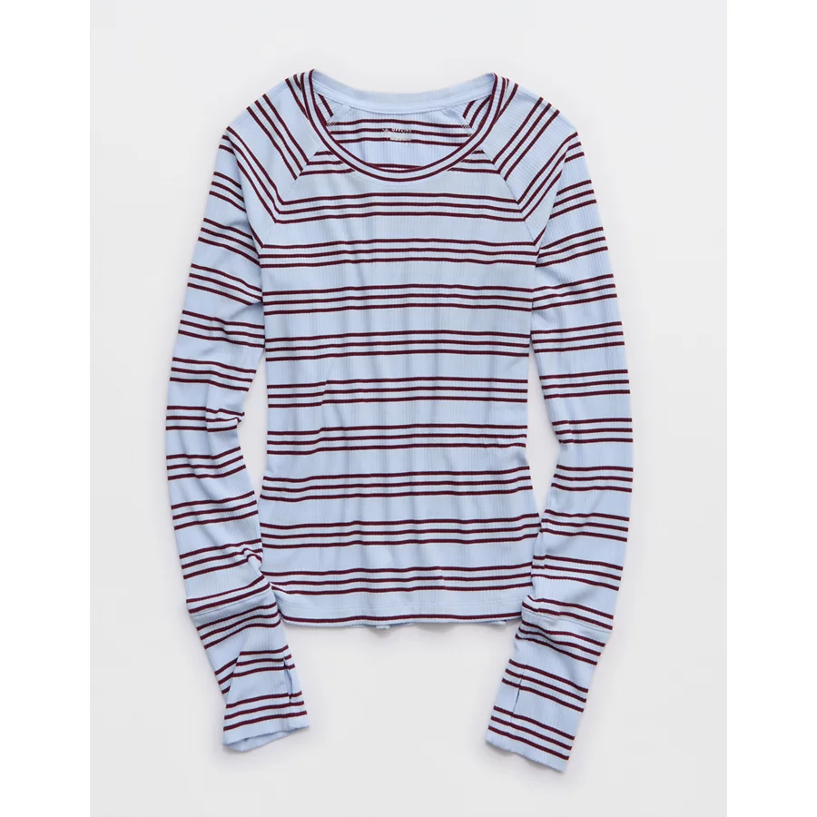 OFFLINE By Aerie Thumbs Up Fitted Ribbed T-Shirt – Eyelet Blue