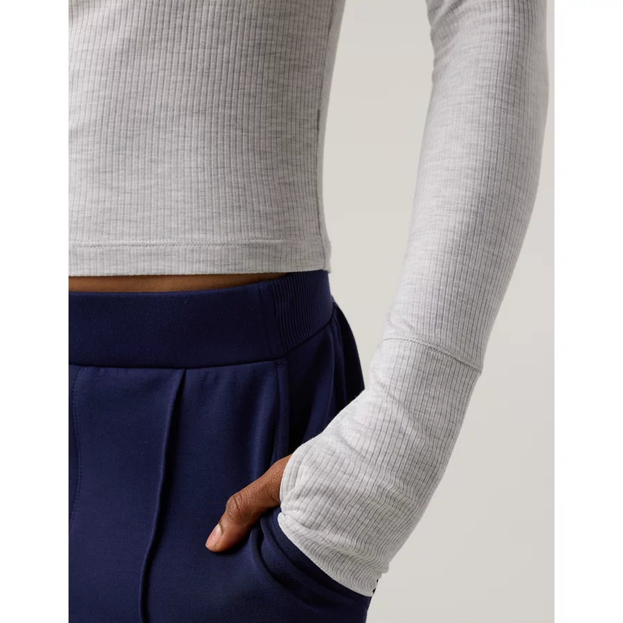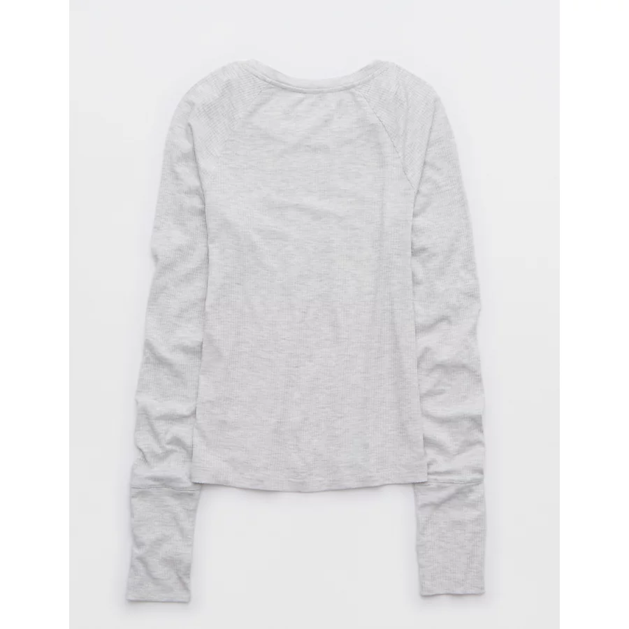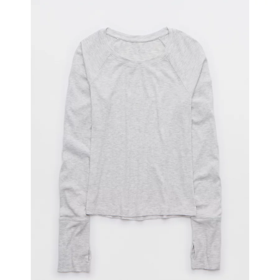OFFLINE By Aerie Thumbs Up Fitted Ribbed T-Shirt – Light Heather Gray
