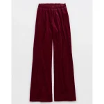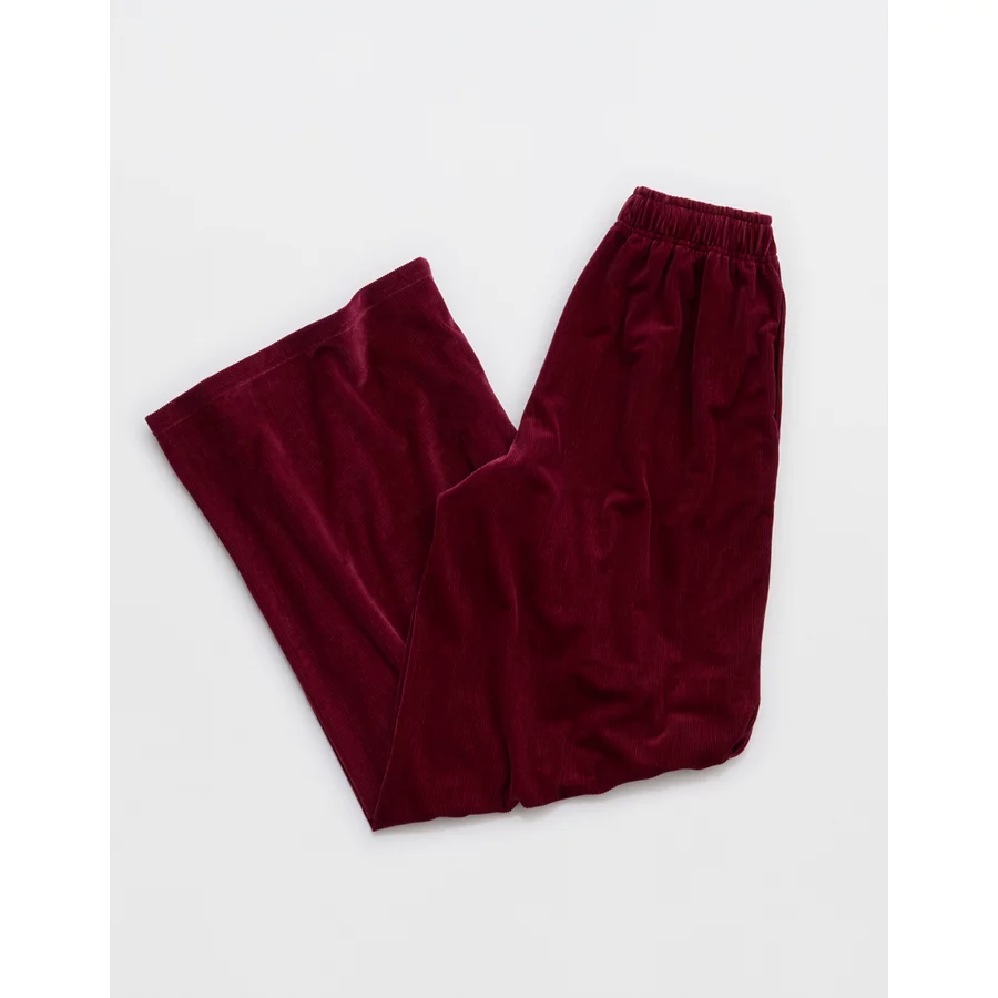 OFFLINE By Aerie Velour Rib Super Wide Leg Pant – Deep Cherry