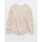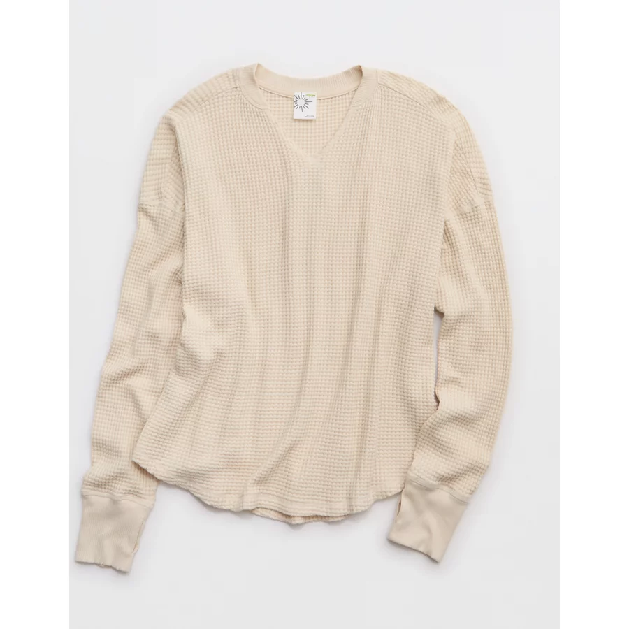 OFFLINE By Aerie Wow! Waffle Notch Neck Long Sleeve T-Shirt – Cake Batter