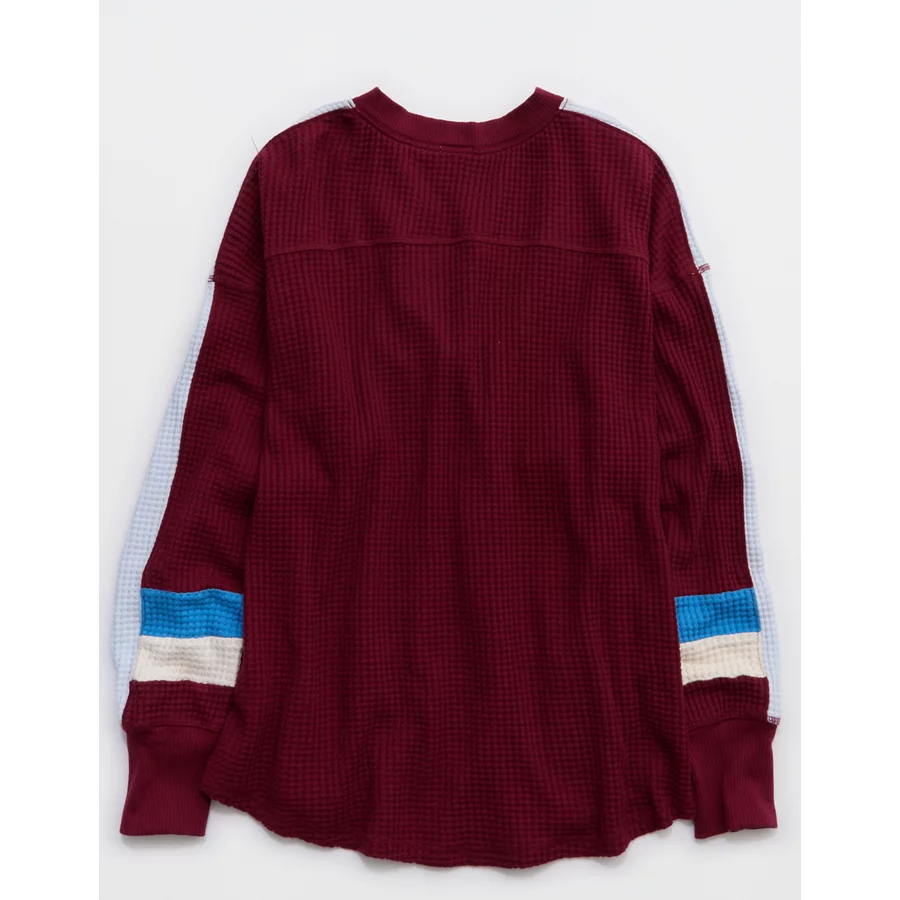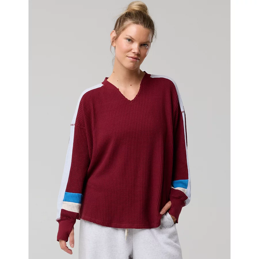 OFFLINE By Aerie Wow! Waffle Notch Neck Long Sleeve T-Shirt – Deep Cherry