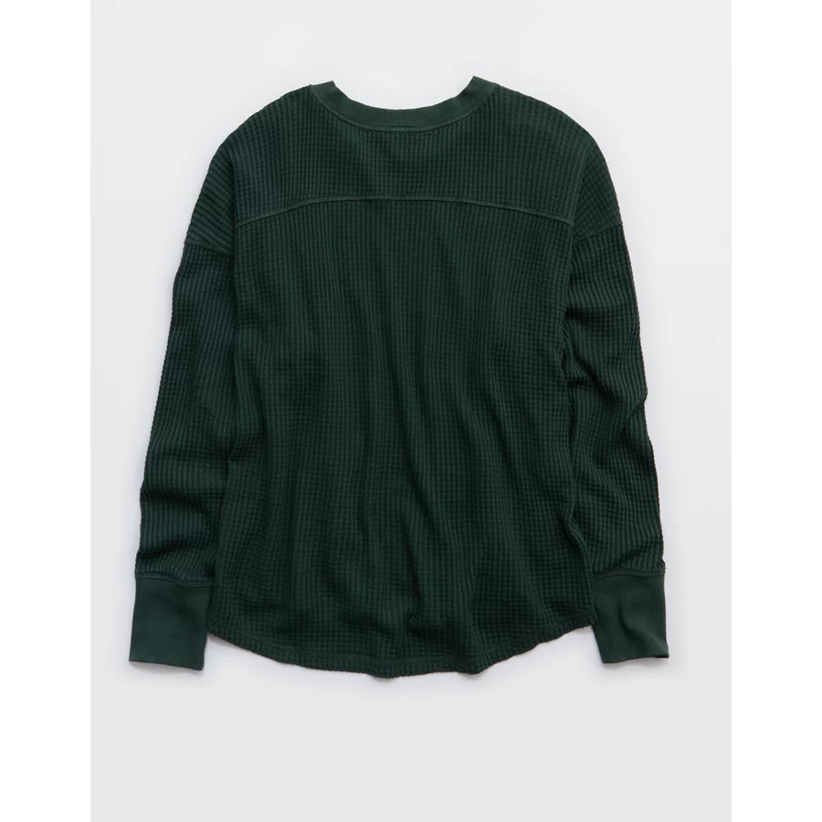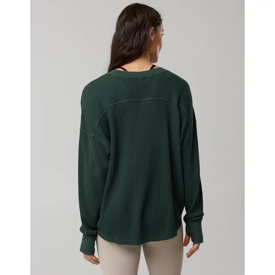 OFFLINE By Aerie Wow! Waffle Notch Neck Long Sleeve T-Shirt – Mystical Green