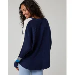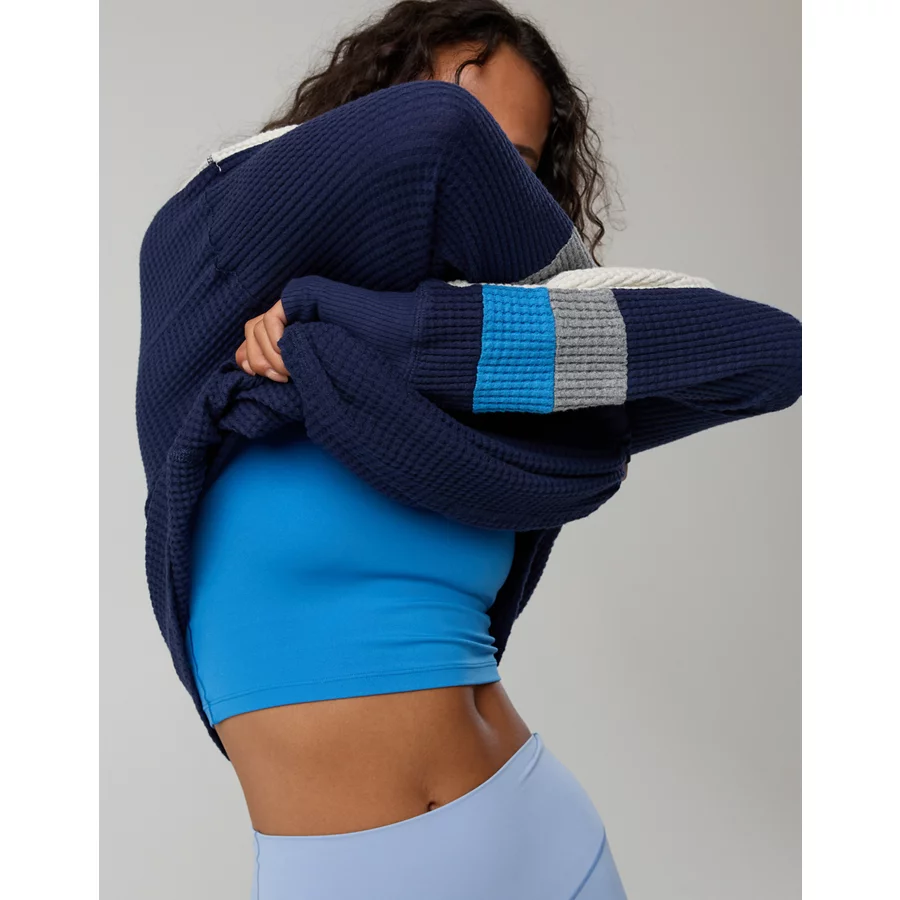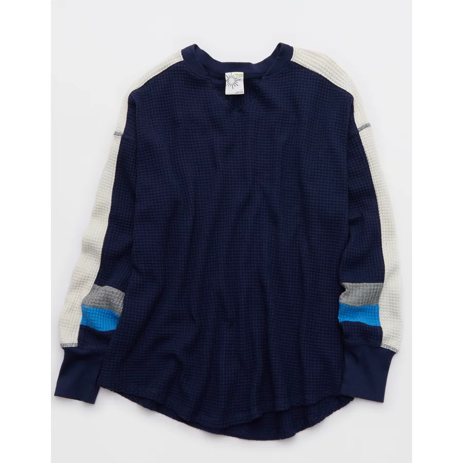 OFFLINE By Aerie Wow! Waffle Notch Neck Long Sleeve T-Shirt – Royal Navy