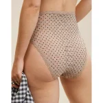 Show Off Flocked Vintage Lace High Waisted Bikini Underwear - Soft Muslin