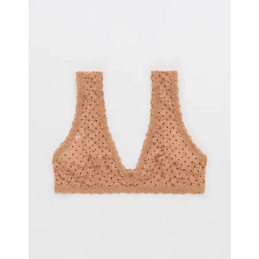 Show Off Flocked Vintage Lace Plunge Bralette – Beach Dune