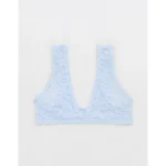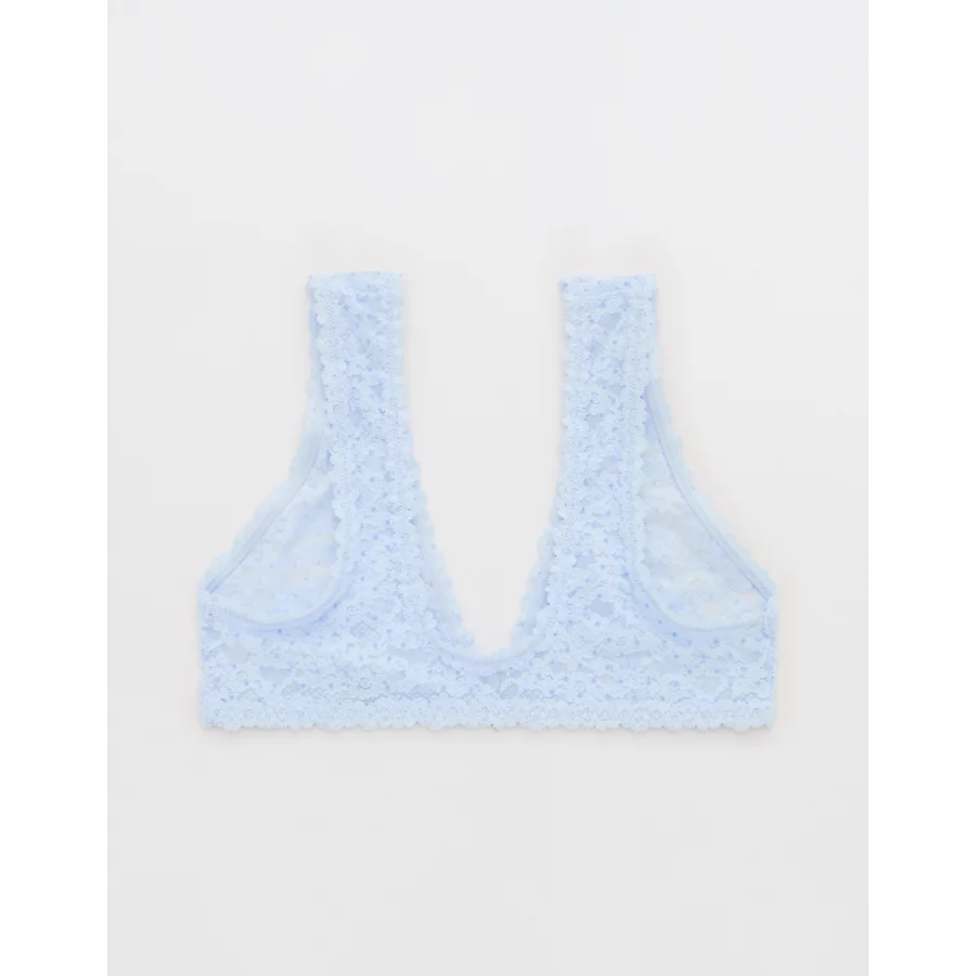 Show Off Flocked Vintage Lace Plunge Bralette – Eyelet Blue
