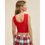 Design: Deep plunge neckline. Crop length hits just at the waist.
