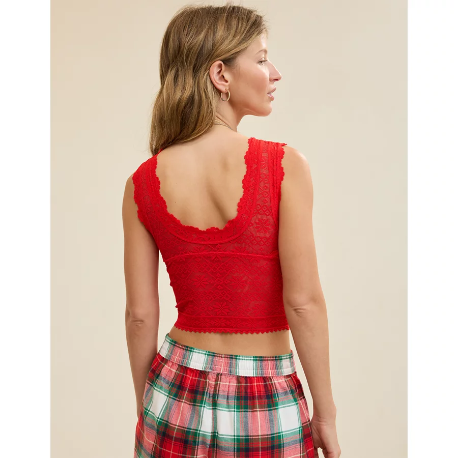 Fabric: Soft & stretchy lace with fair isle snowflake details.