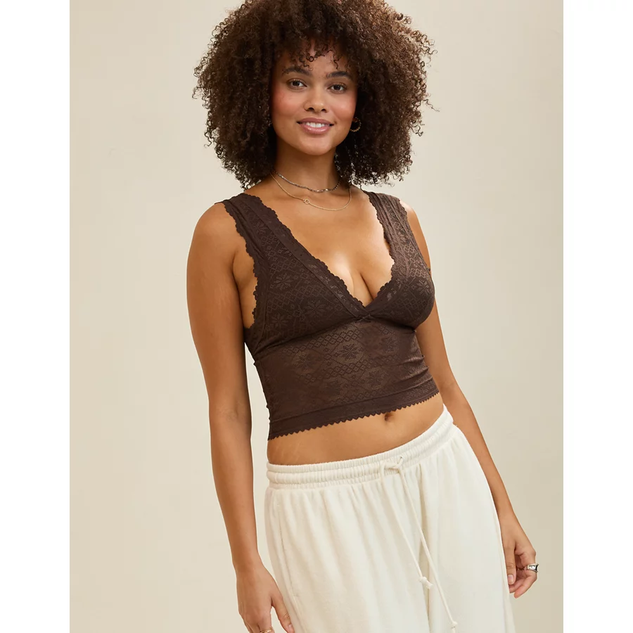 Show Off Lace Plunge Bra Top – Deep Earth