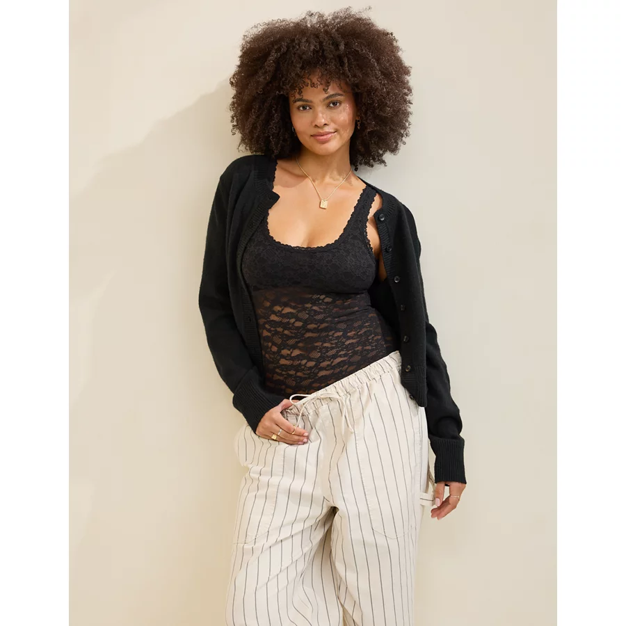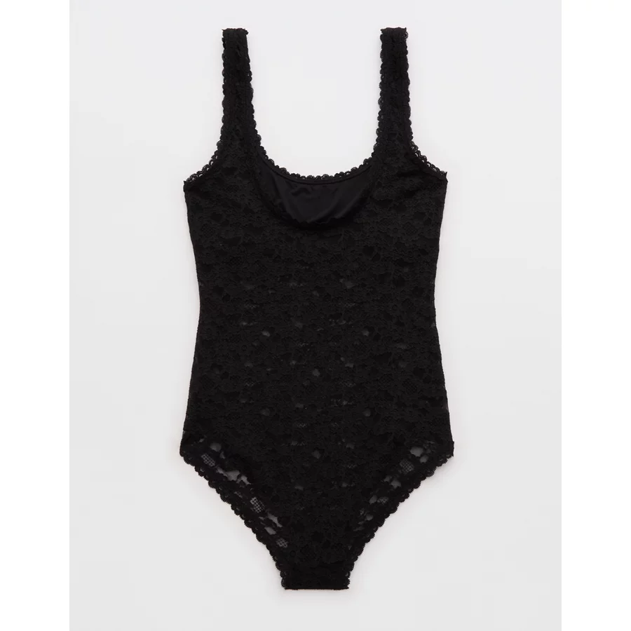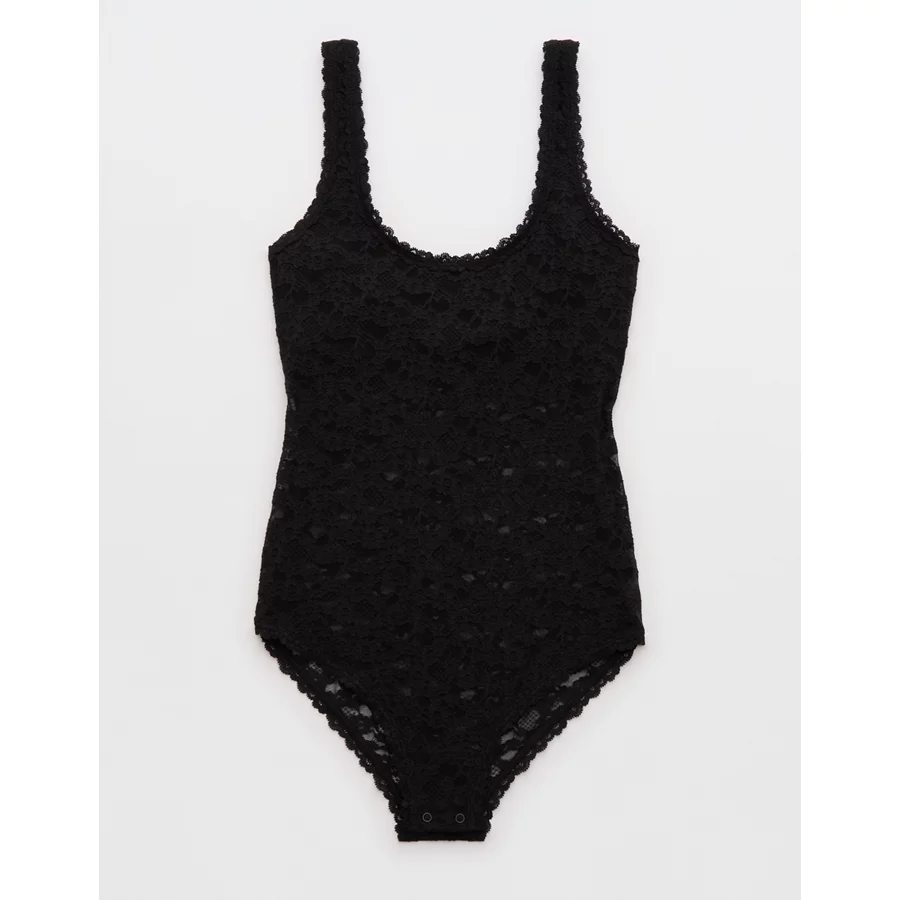 Show Off Vintage Lace Scoop Bodysuit – True Black