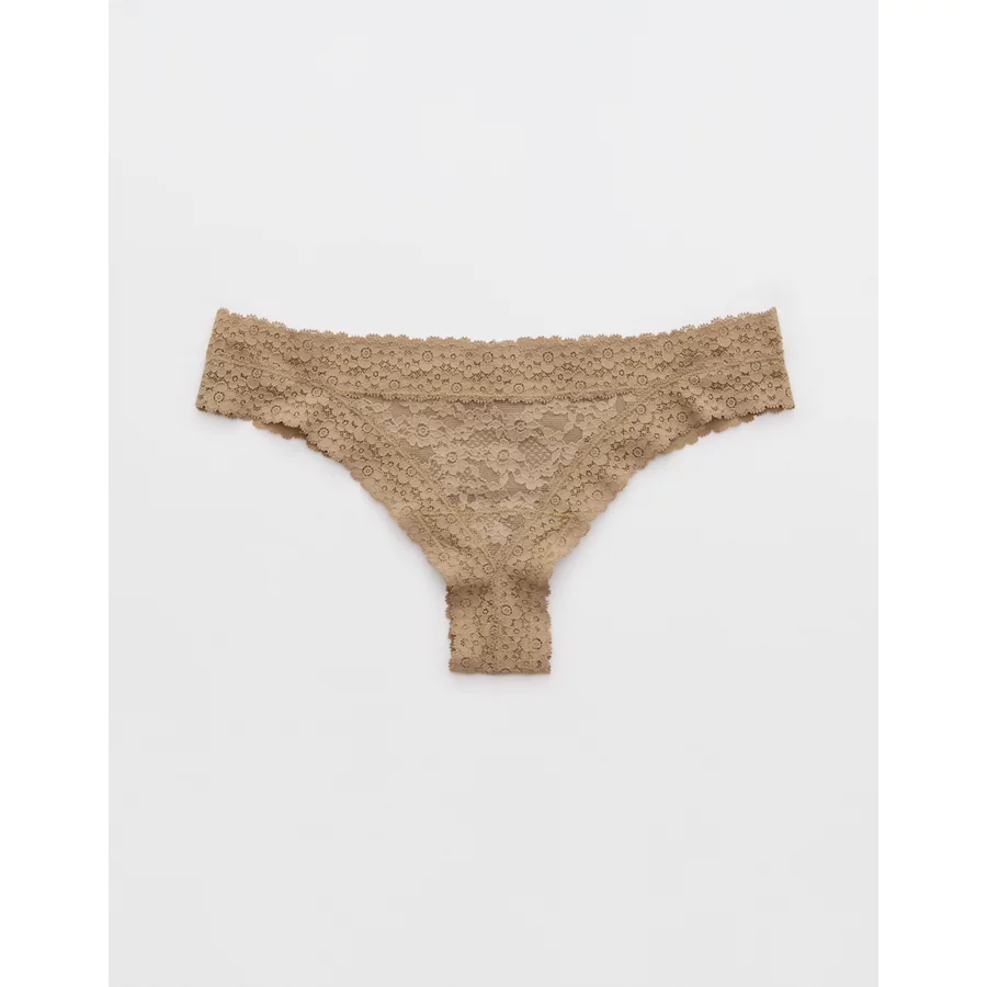 Show Off Vintage Lace Trim Thong Underwear – Beige