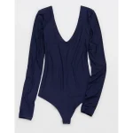 SMOOTHEZ Long Sleeve Plunge Bodysuit – Navy