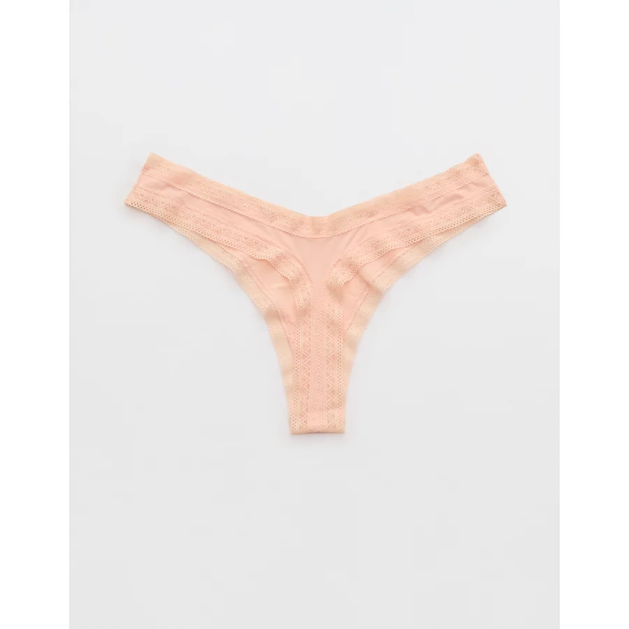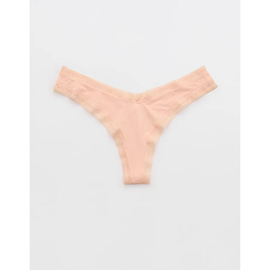 SMOOTHEZ Microfiber Lace High Cut Thong Underwear – Peach