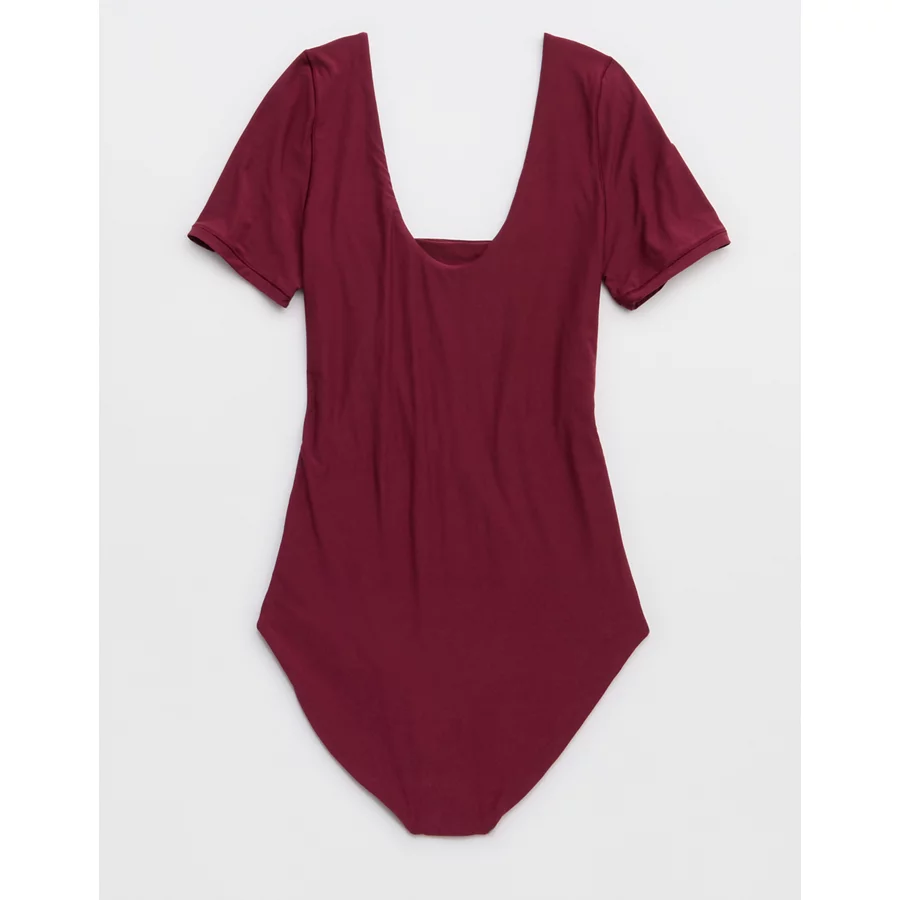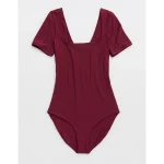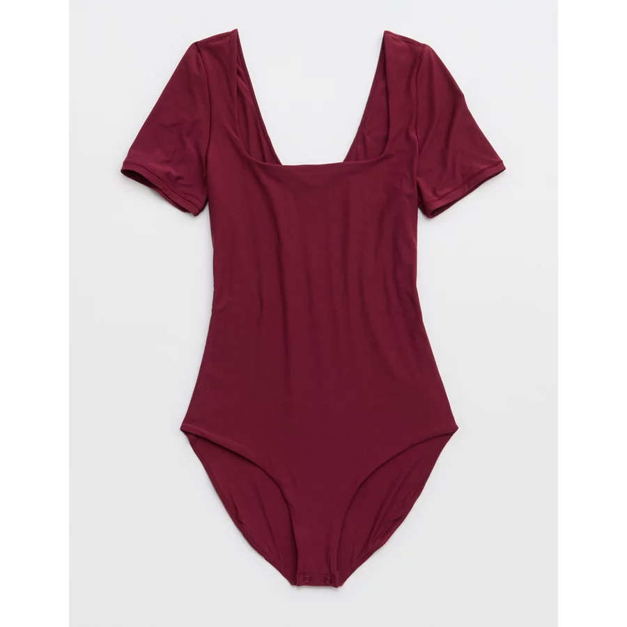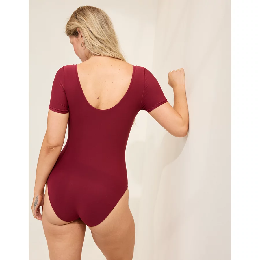 SMOOTHEZ Short Sleeve Square Neck Bodysuit – Deep Cherry