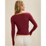 SMOOTHEZ Square Neck Long Sleeve T-Shirt – Deep Cherry