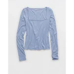 SMOOTHEZ Square Neck Long Sleeve T-Shirt – Monaco Blue