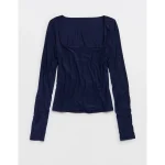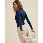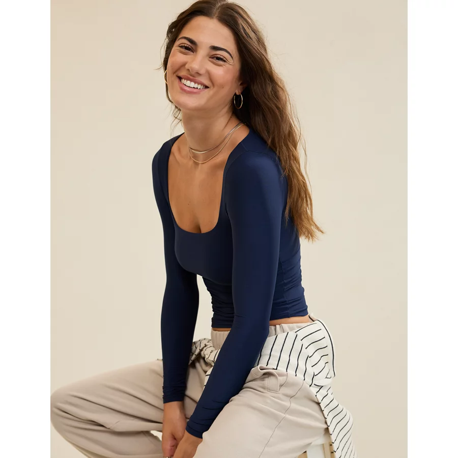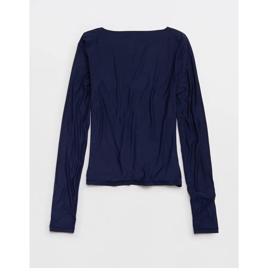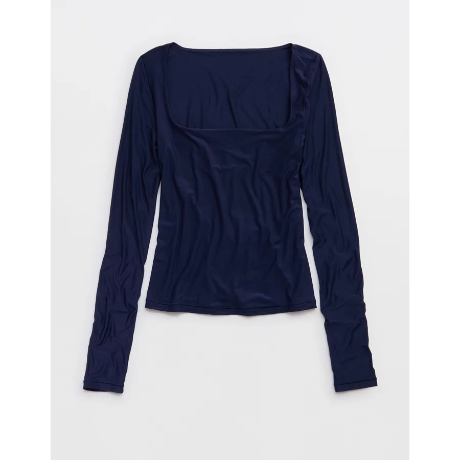 SMOOTHEZ Square Neck Long Sleeve T-Shirt – Navy