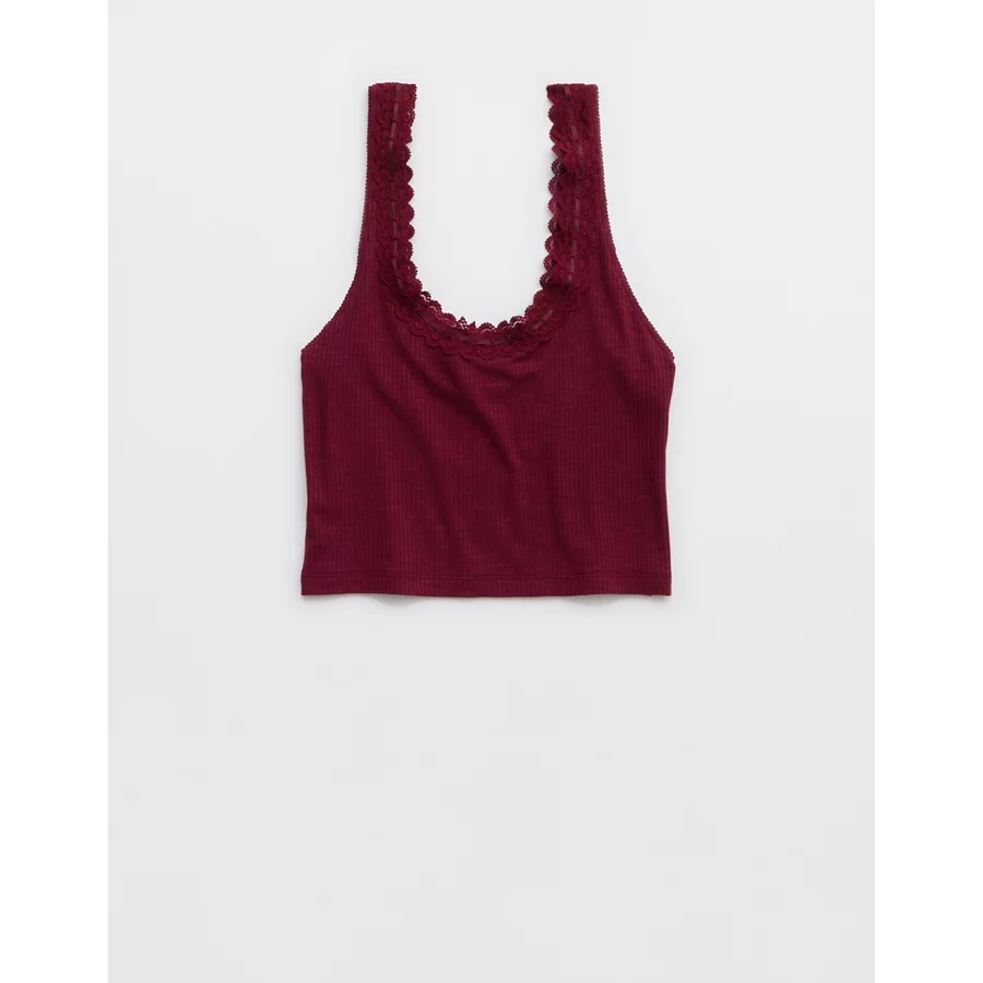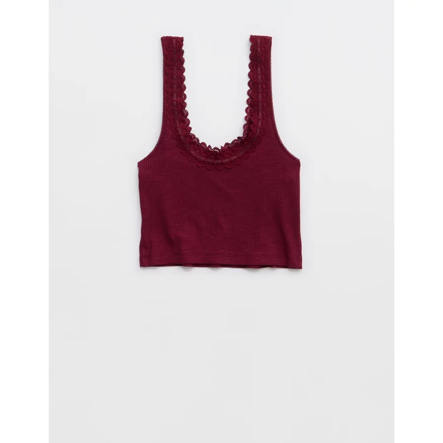 Superchill Cotton Rib Lace Tank Top – Deep Cherry