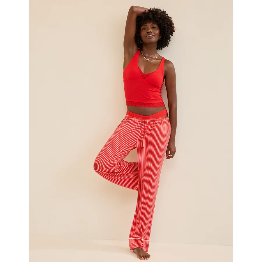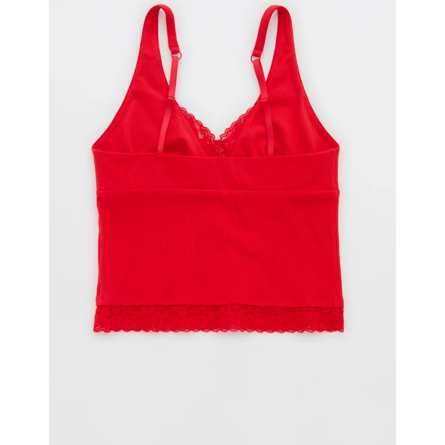 Superchill Cotton Rib Vintage Lace Tank Top – Bright Red