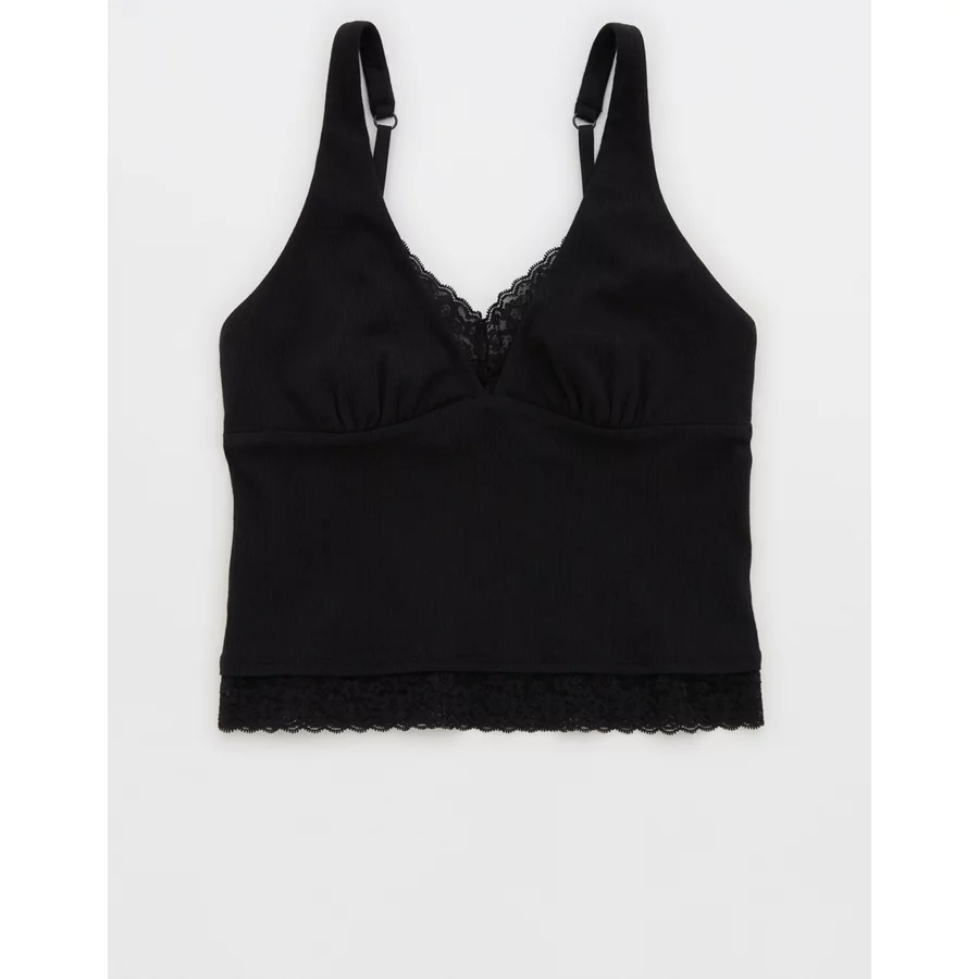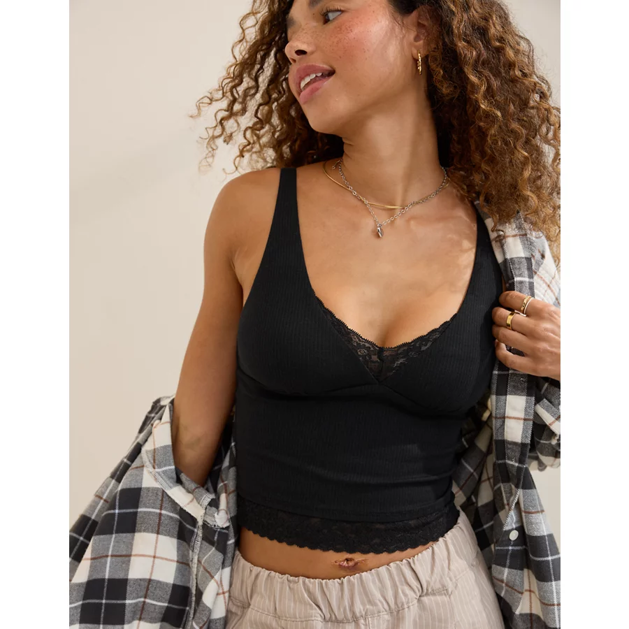 Superchill Cotton Rib Vintage Lace Tank Top – True Black