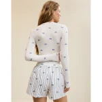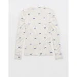 Real Good Everyday yarnRolled necklineRibbed trim on cuffs and hemPointelle deets and split cuffs on the sleevesStripedAccessibility deets: over-the-head access