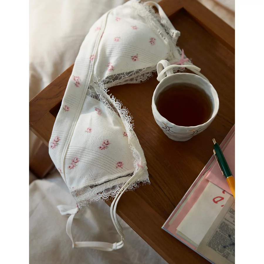 Superchill Pointelle Padded Triangle Bralette – Natural