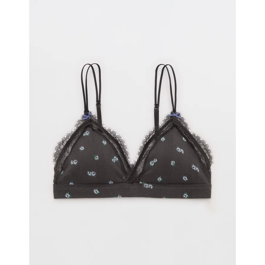 Superchill Pointelle Padded Triangle Bralette – Smoked Gray