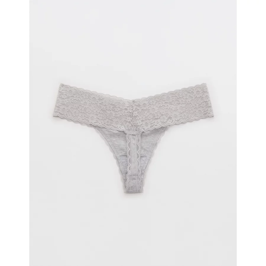 Superchill Vintage Lace Cotton Thong Underwear – Medium Heather Gray